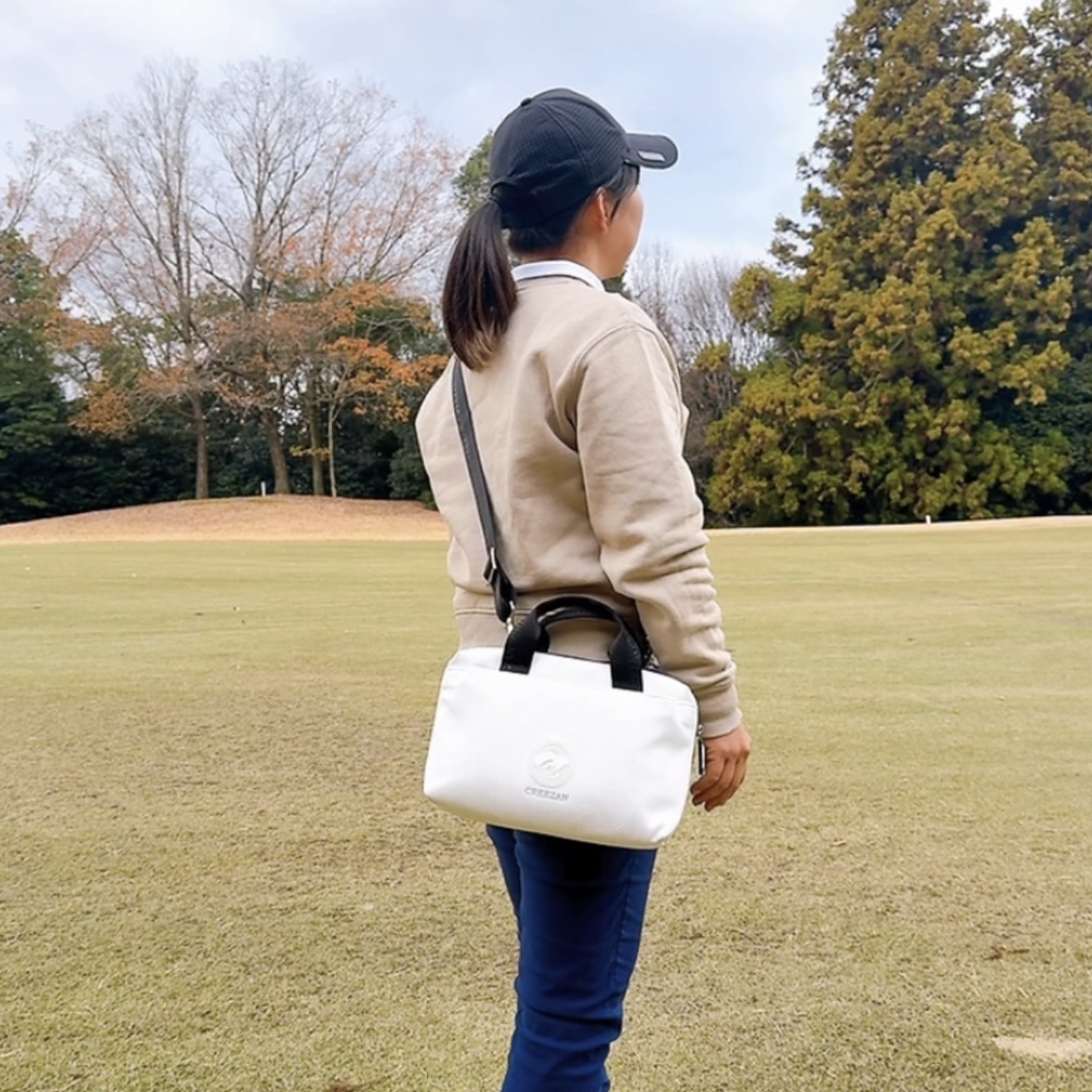半透明のエンブレムや、テープにトーンオントーンでロゴをさりげなく配し、未来感のあるモードなデザインに仕上げています。 ゴルフシーンでの使いやすさはもちろん、ファッション性にもこだわりデイリーユースにも対応します。