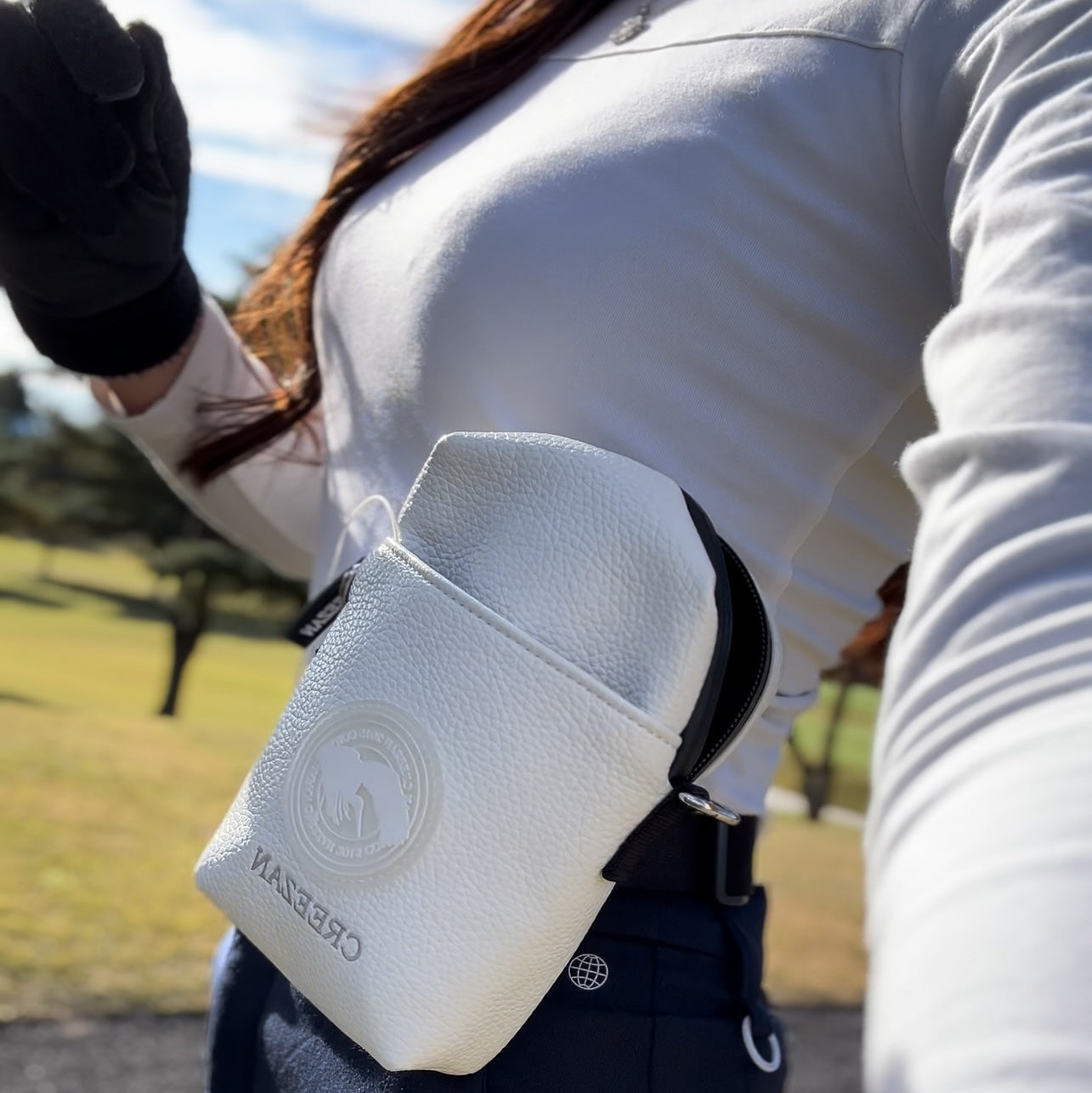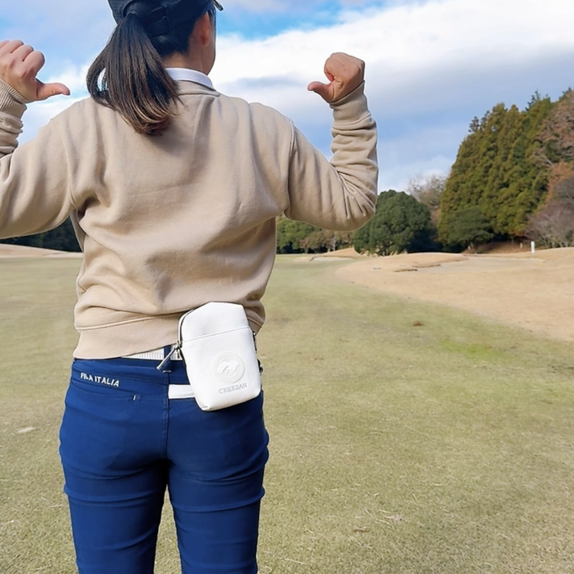 外部ポケットにはスマートフォンや距離計も収納可能です。プレイ中もスムーズに取り出しやすく便利です。